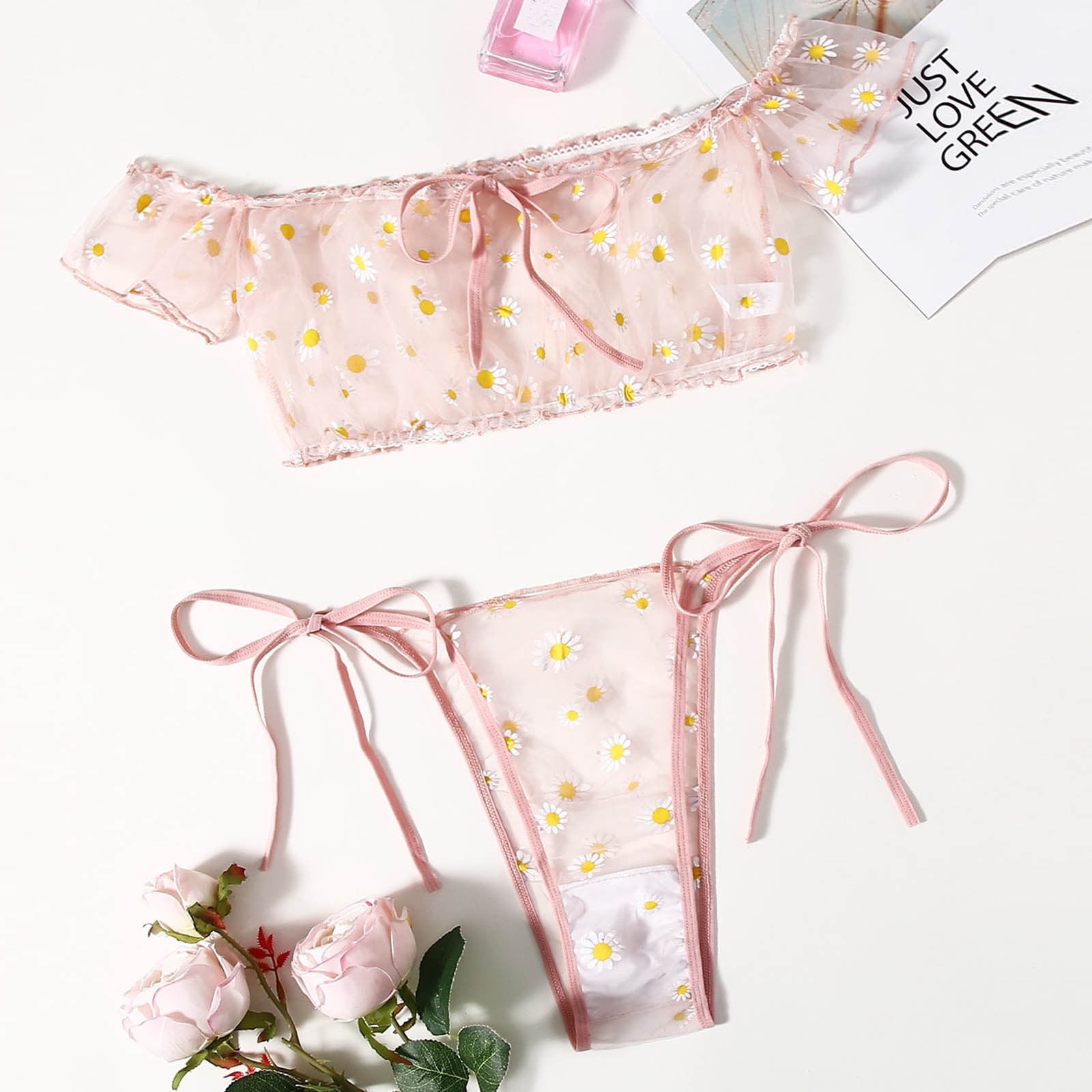 Egmy 2pcs Floral Sexy Women Temptation Babydoll Lingerie Underpants Underwear Set Walmart Com